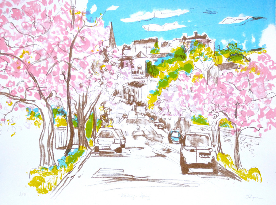 "Edinburgh Spring", 5 layer stone and plate lithograph, Edition of 11. (Prints Available - email me for details)